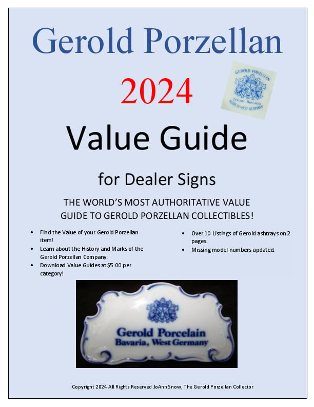 Download a 2024 Digital PDF Value Guide for Gerold Porzellan Dealer Signs for $5.00. This Value Guide has over 10 listings of Gerold animal figurines on 3 pages.