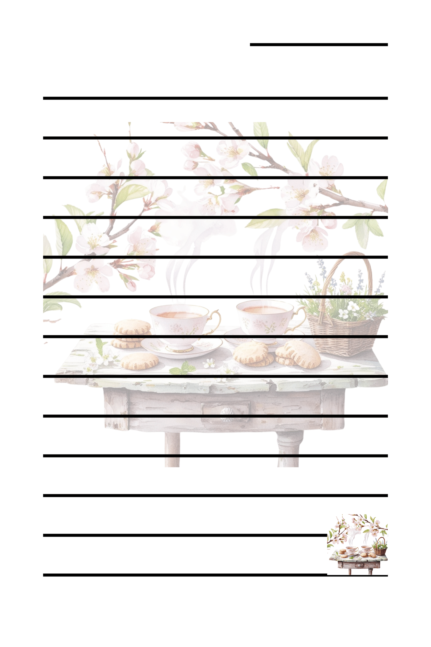 Pour a cup of calm with our Tea Time in Bloom Notepad — a charming addition to your daily writing, planning, or journaling rituals. This lovely 6" x 9" notepad features a soft watercolor scene of a spring tea set resting on a vintage table, surrounded by delicate cherry blossoms and cozy pastries.