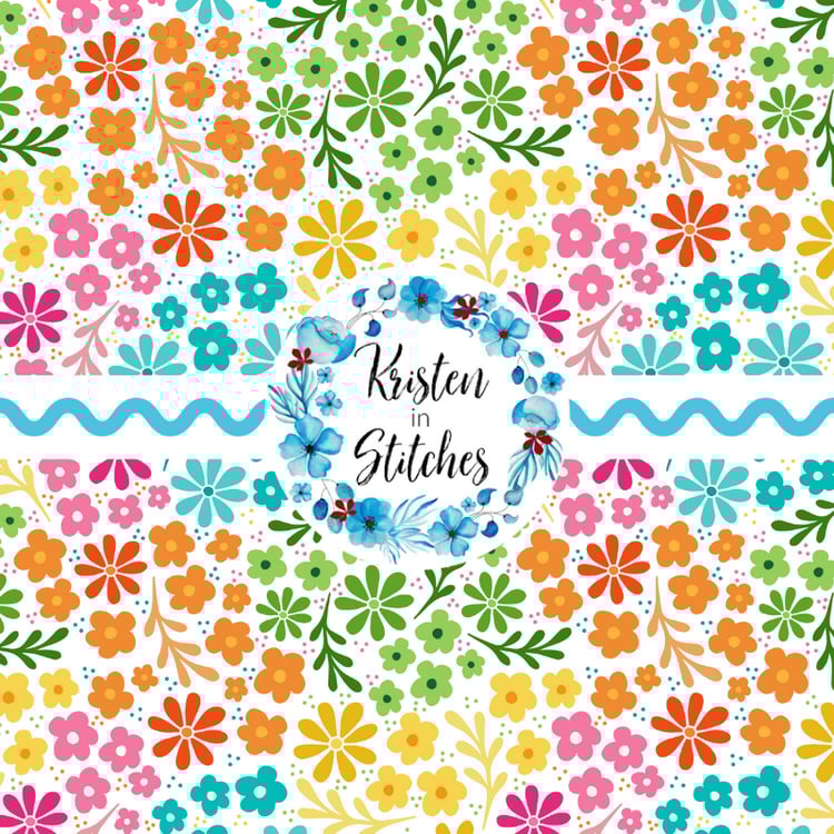 Boho Rainbow Garden Floral Seamless Pattern, Spring Showers, Whimsy Flowers, Navy
