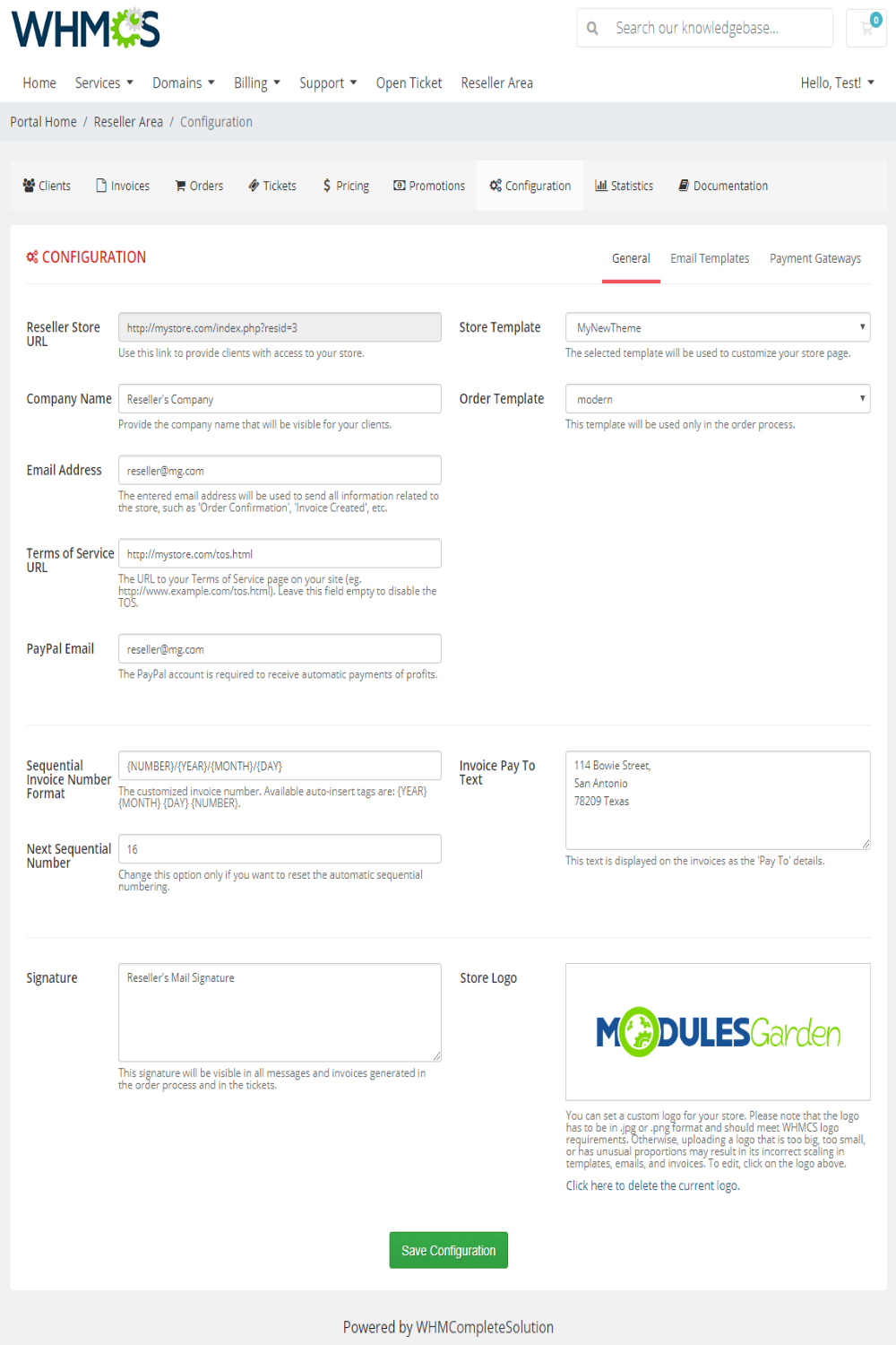 The genius of Resellers Center For WHMCS lies also in the choice between two reliable invoicing formulas. The first one will permit the resellers to configure independent payment gateways, issue customized invoices for end clients, and collect the money in a direct manner. Alternatively, you can receive payments settled by end clients in full, and then transfer payouts to your resellers either manually or automatically.