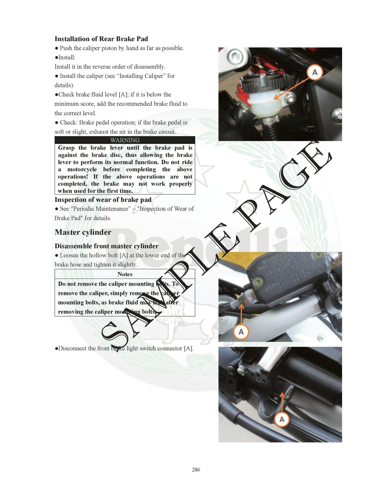 BENELLI TRK 251 ABS TRK251 2019 ONWARD BIKE WORKSHOP SERVICE REPAIR MANUAL (DOWNLOAD COPY)
