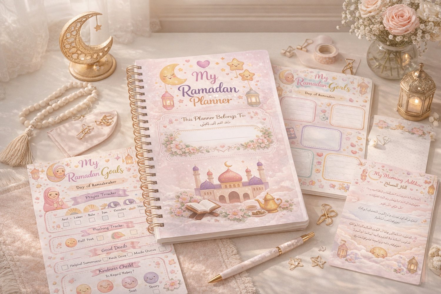This beautifully designed 100-page Ramadan Planner for Girls is a complete spiritual journey created to help young Muslim girls grow closer to Allah during Ramadan.