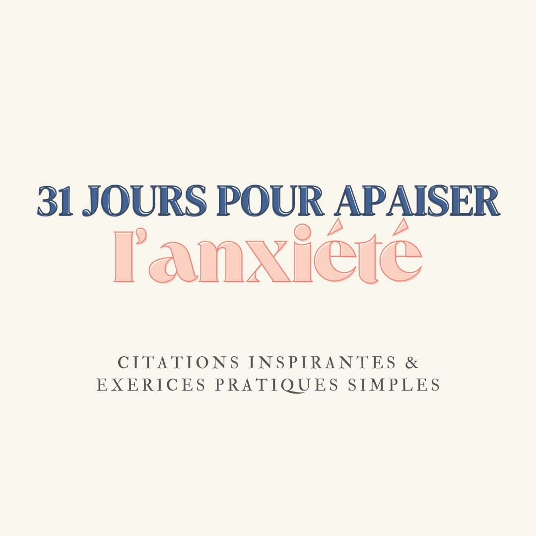 Ce programme de 31 jours est conçu pour vous accompagner dans la gestion de l'anxiété de manière simple, douce et progressive. Chaque jour, vous découvrirez une citation inspirante suivie d'un mini-exercice pratique, pensé pour vous aider à apaiser votre esprit, réduire votre anxiété et cultiver des pensées positives au quotidien.