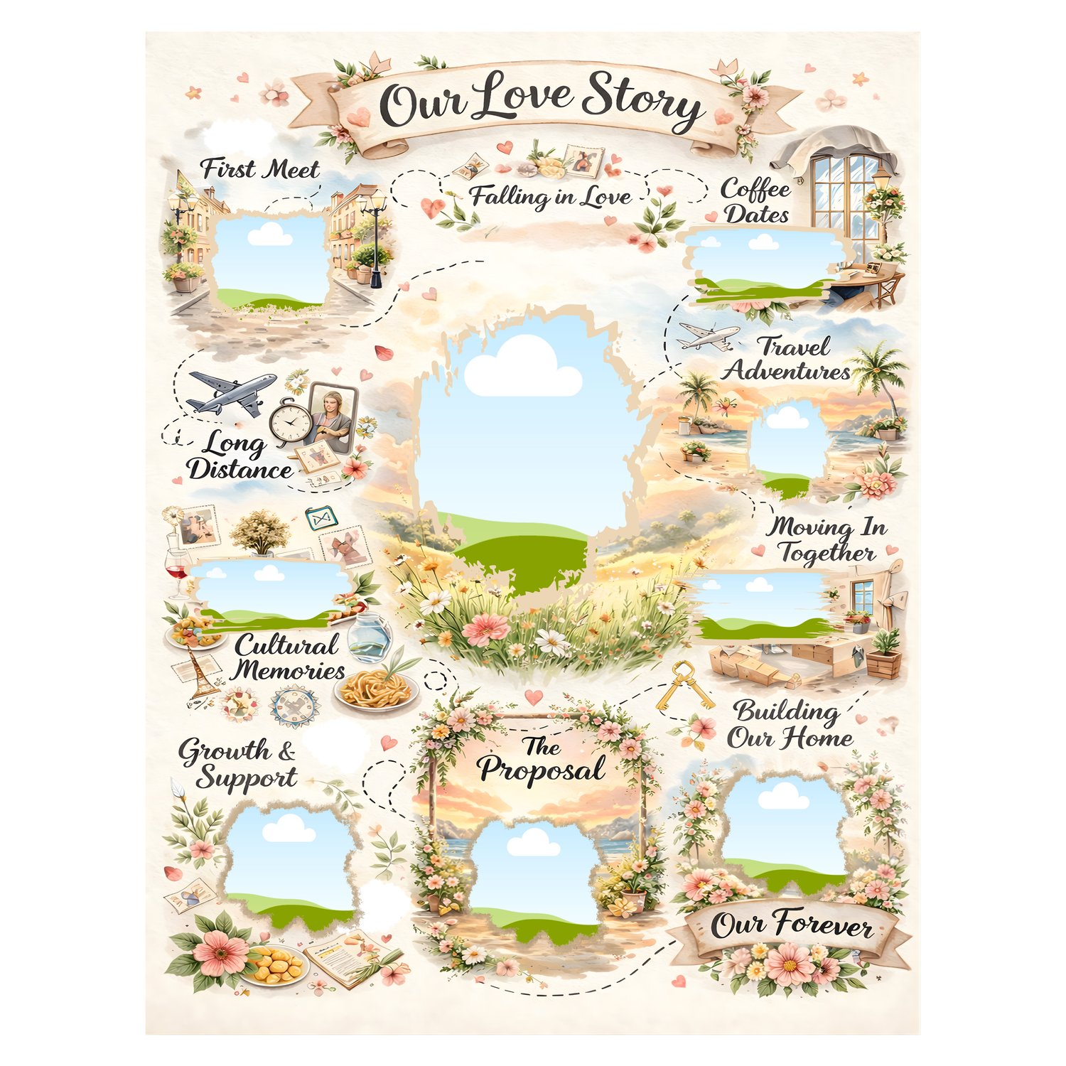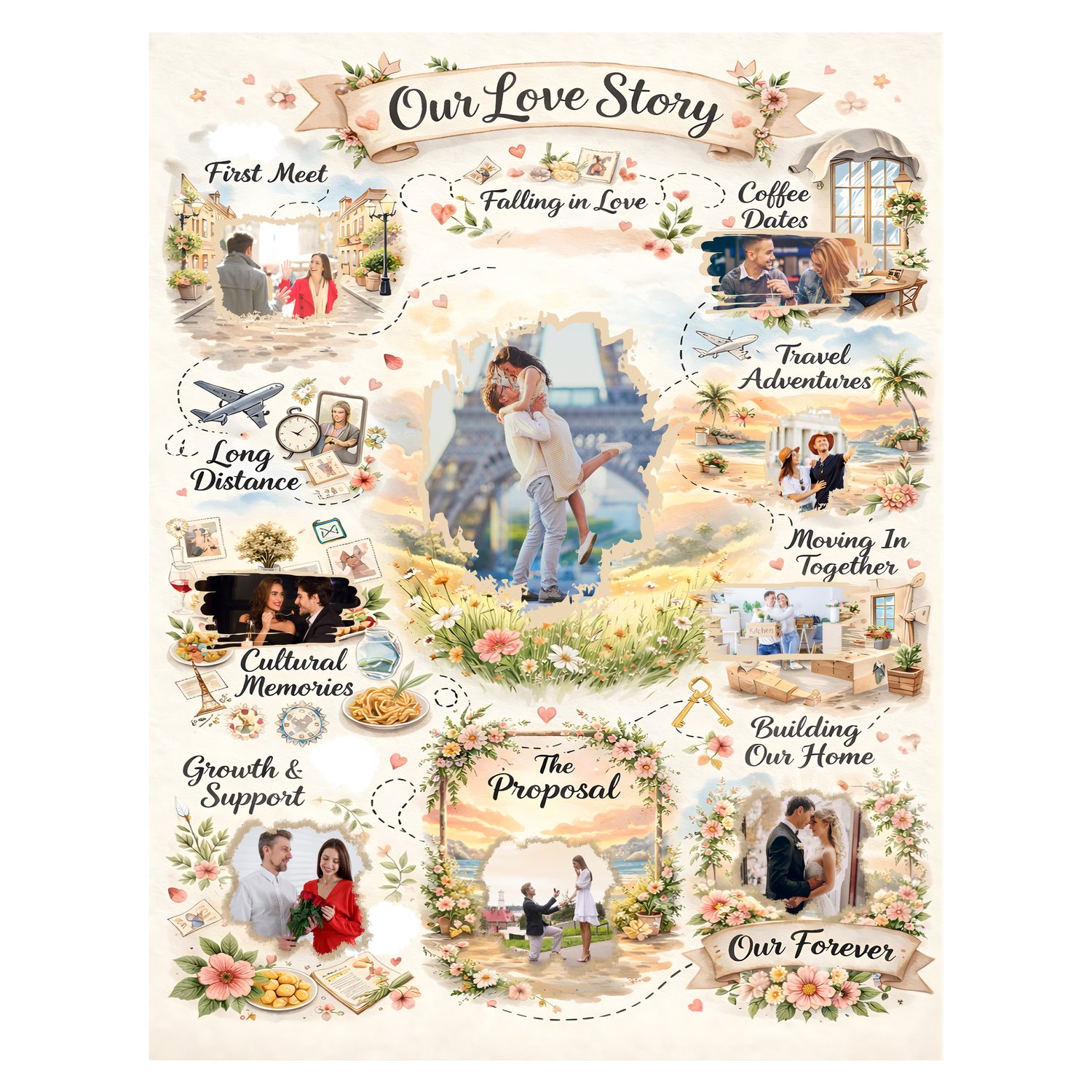Love Story Timeline Photo Template | Editable Images Only | Romantic Anniversary Couple Wall Art | Printable or Canva