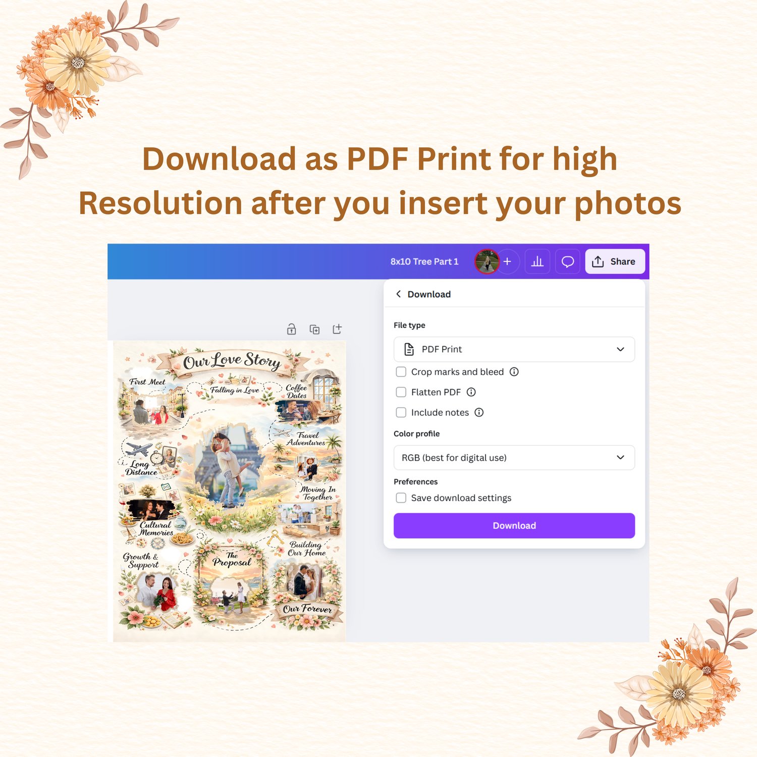 Celebrate your journey together with a timeless Love Story Timeline Photo Template. This design allows photo editing only layout and text stay perfectly styled. Ideal for anniversaries, weddings, or meaningful gifts. Instant download, easy to use in Canva or print at home.