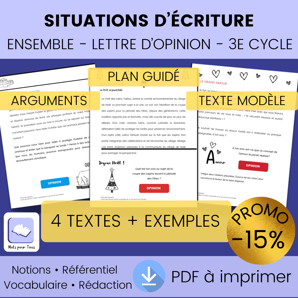 Ensemble Lettre d’opinion (3e cycle) – 4 situations + textes modèles
