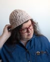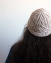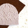 The Heartwood Hat is a deeply-textured & engaging knit, entwined with cables which trace their path from the brim into a ring of knotted hearts, and up into a flowerlike crown. Two sizes are included, each requiring a single skein of DK-weight yarn. The coordinating Heartwood Cowl is available separately, and uses fingering-weight yarn for the perfect balance of drape and squish.