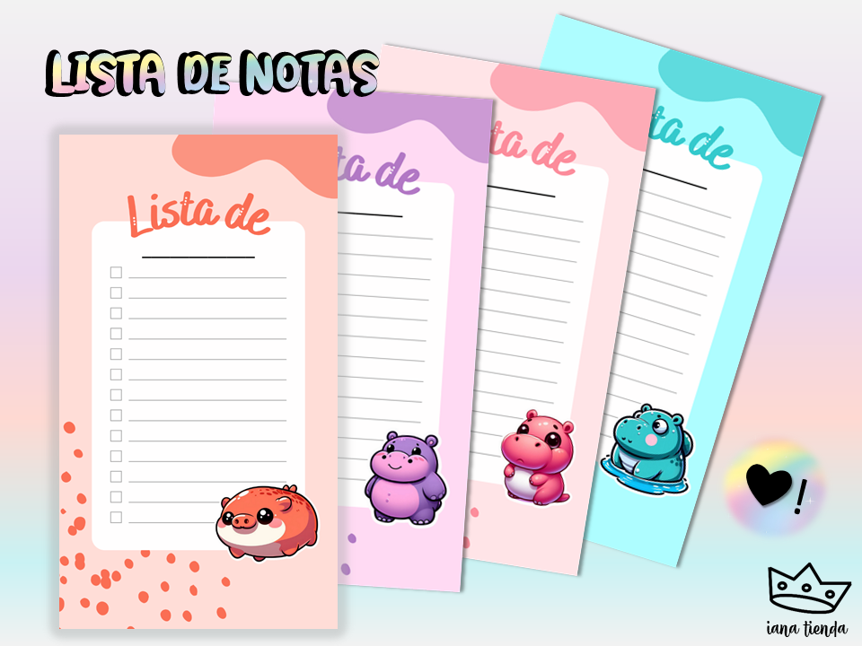 Cada lista está adornada con colores vibrantes y adorables personajes animados, agregando un toque divertido a tu día a día.