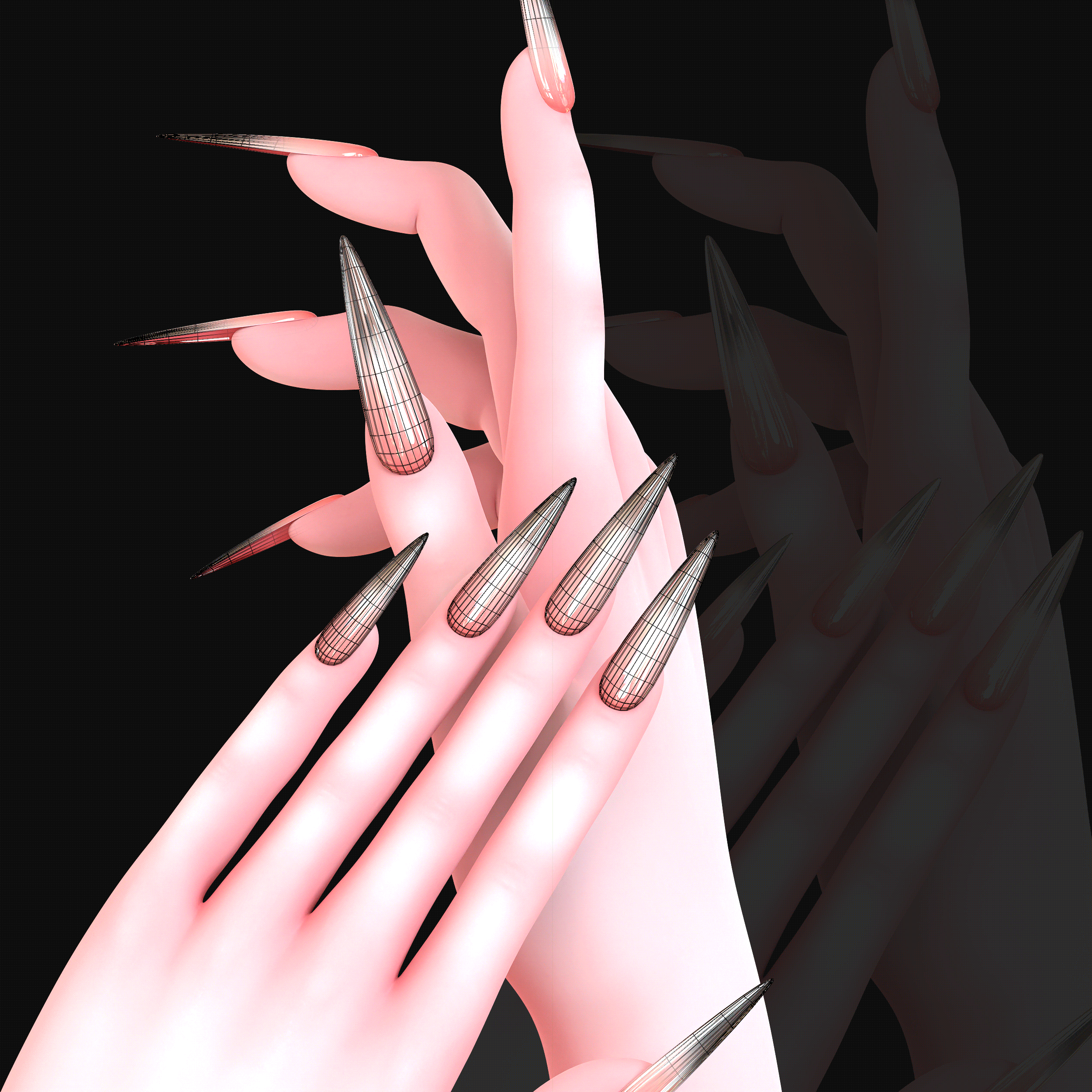 • Customizable Blendshapes : Includes multiple blendshapes to adjust nail length and sharpness to suit your needs.