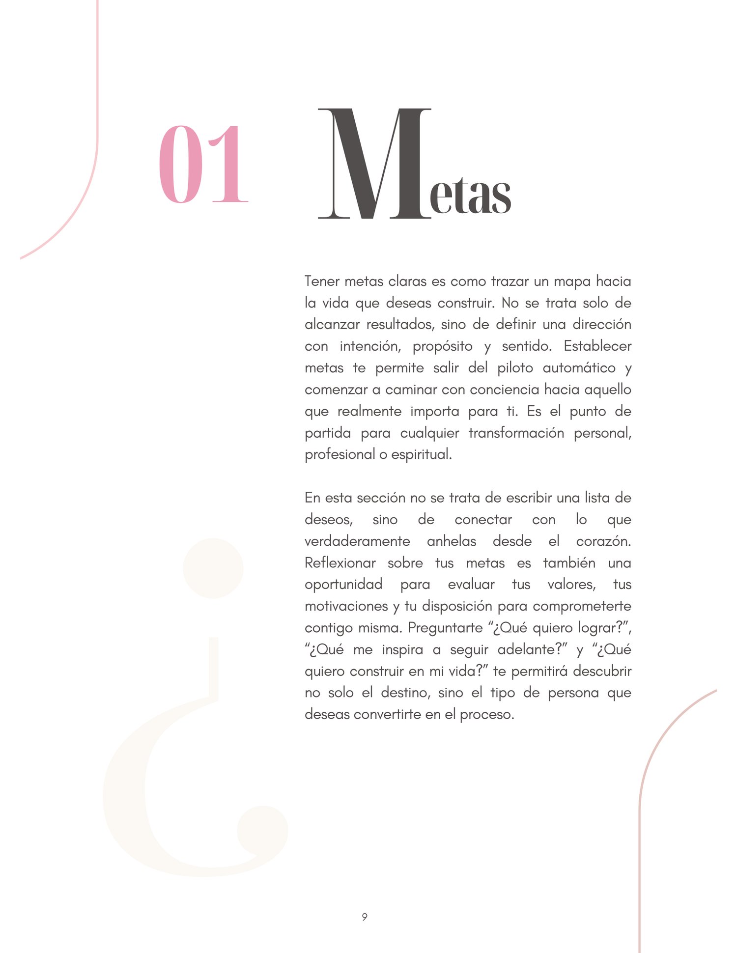 A través de más de 100 preguntas poderosas, reflexiones y frases inspiradoras, este jorunal te invita a pausar, escribir, sentir y tomar decisiones conscientes sobre la vida que quieres construir. Puedes usarlo a tu ritmo: escribir a mano, completarlo digitalmente o releerlo cuando necesites claridad.