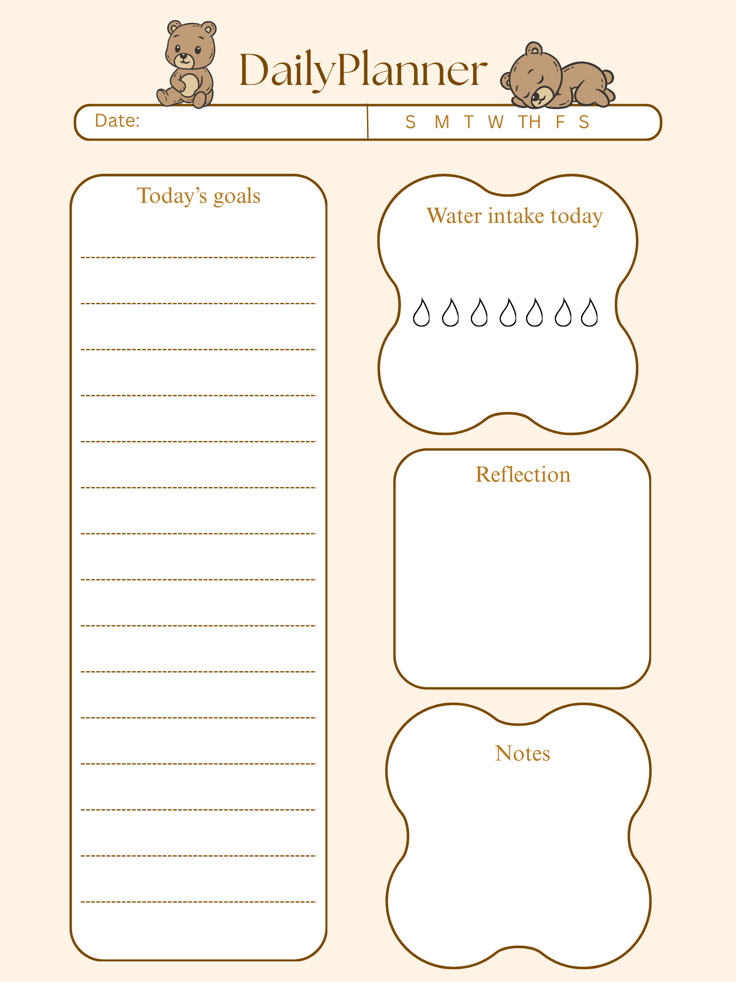 Bear-Themed Daily Planner