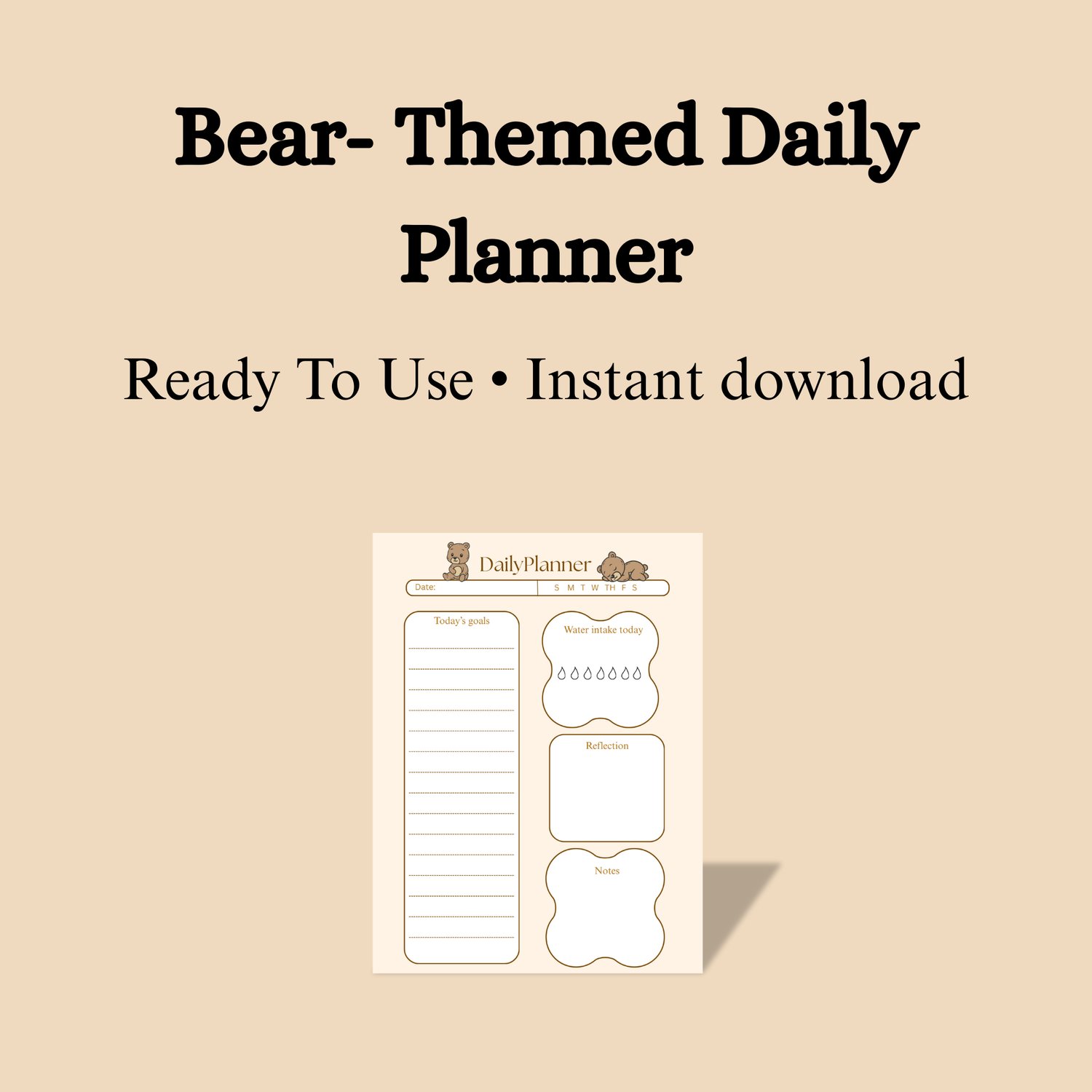 Bring cozy, woodland charm to your day with this Bear-Themed Daily Planner! Featuring warm neutral tones and adorable bear illustrations, this planner creates a soft, comforting space for organizing your goals and thoughts. Perfect for anyone who loves cute, nature-inspired designs.