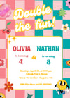 Sibling Birthday Invitation, Double Birthday Invitation, Dual Combined Twins Invitation, Boy and Girl Double Invite, Groovy Hippie Retro Theme invite