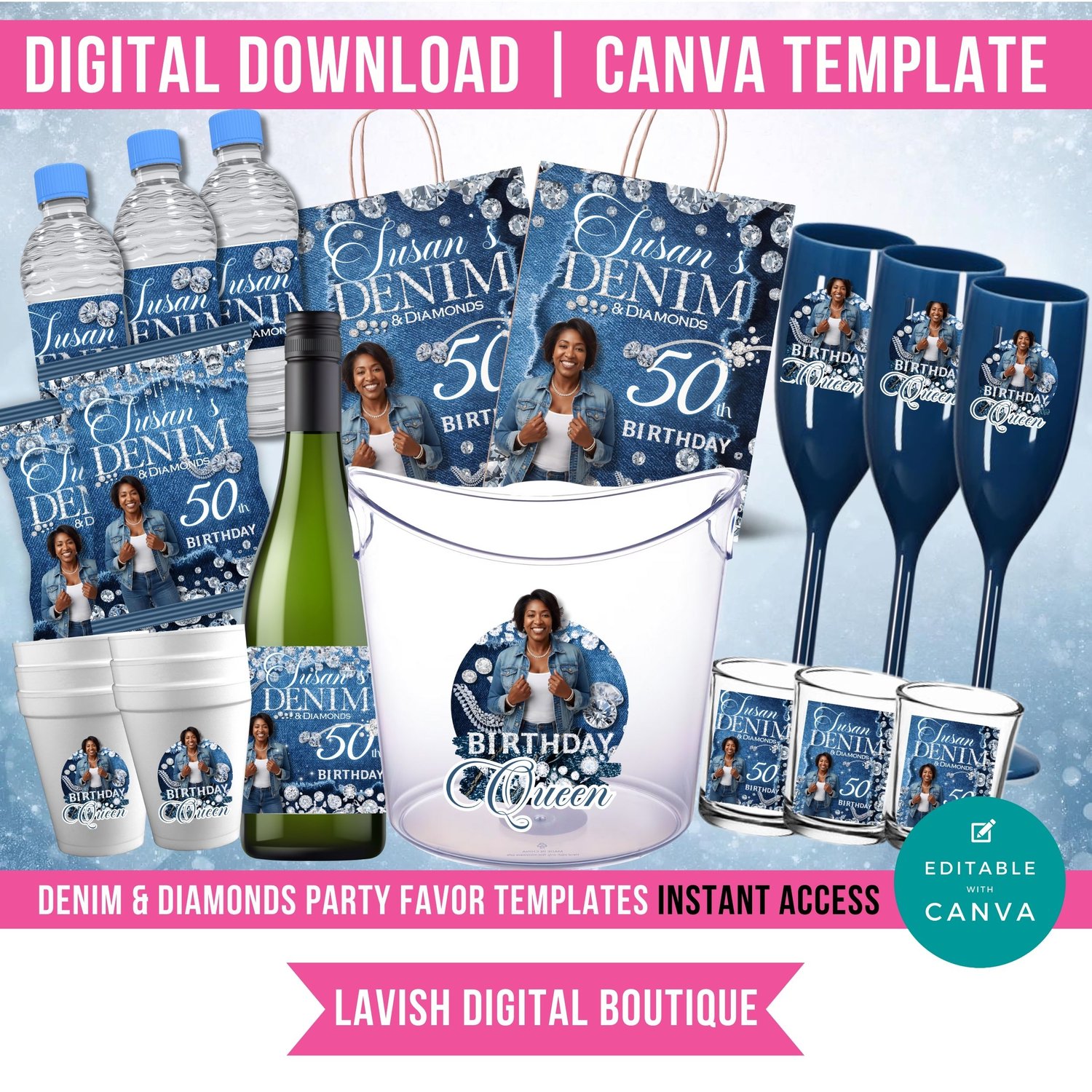 Denim and Diamonds Mega Party Favor Bundle Canva Templates