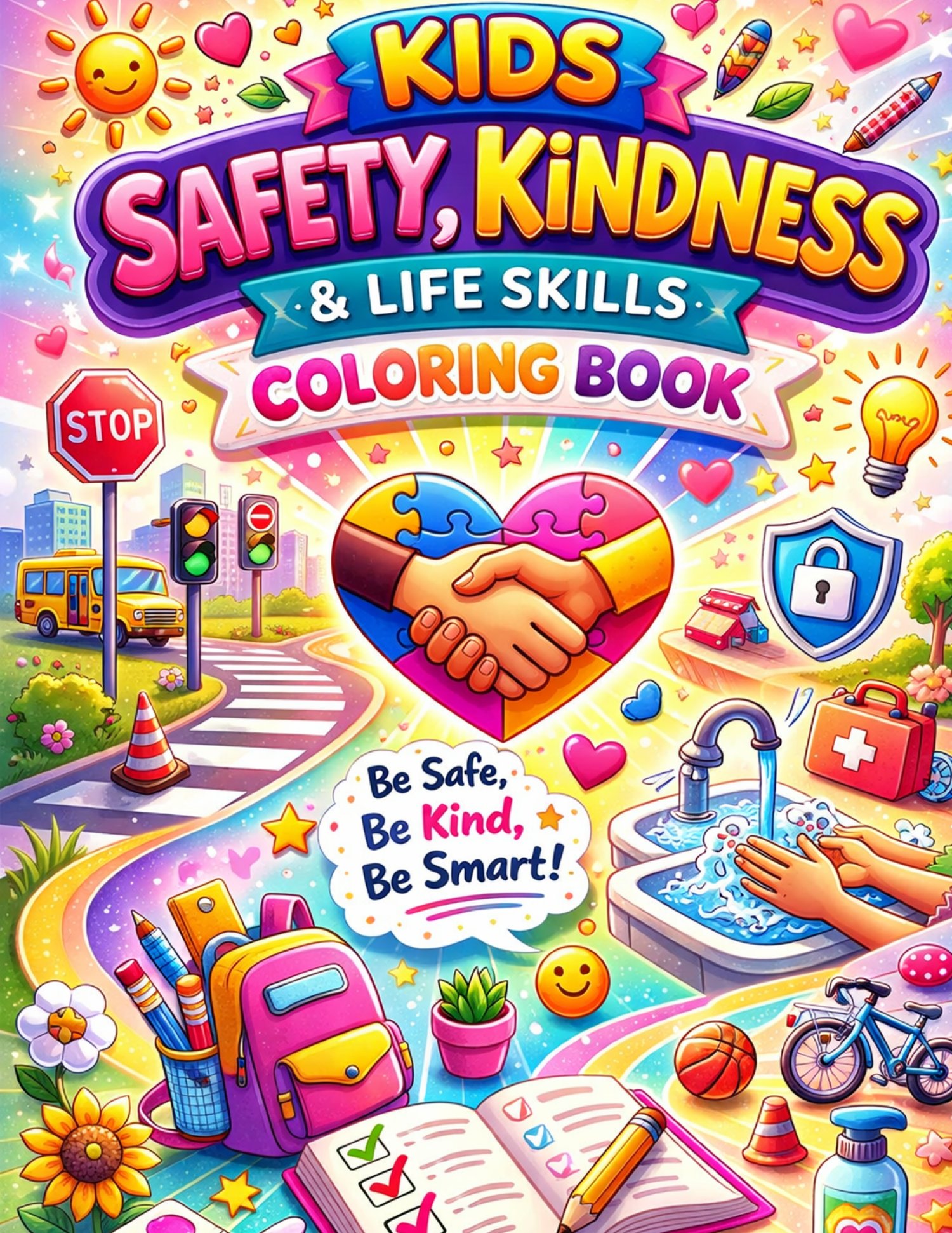 This Safety, Kindness & Life Skills Coloring Book is designed to teach kids essential everyday skills through engaging and easy-to-color pages. Perfect for parents, teachers, caregivers, and homeschool families, this book combines creativity with meaningful learning. (52 Pages)