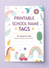 This file includes printable school name tags with fun designs for boys and girls: (Unicorns, Cars, Dinosaurs, Flowers, Rainbows & more).