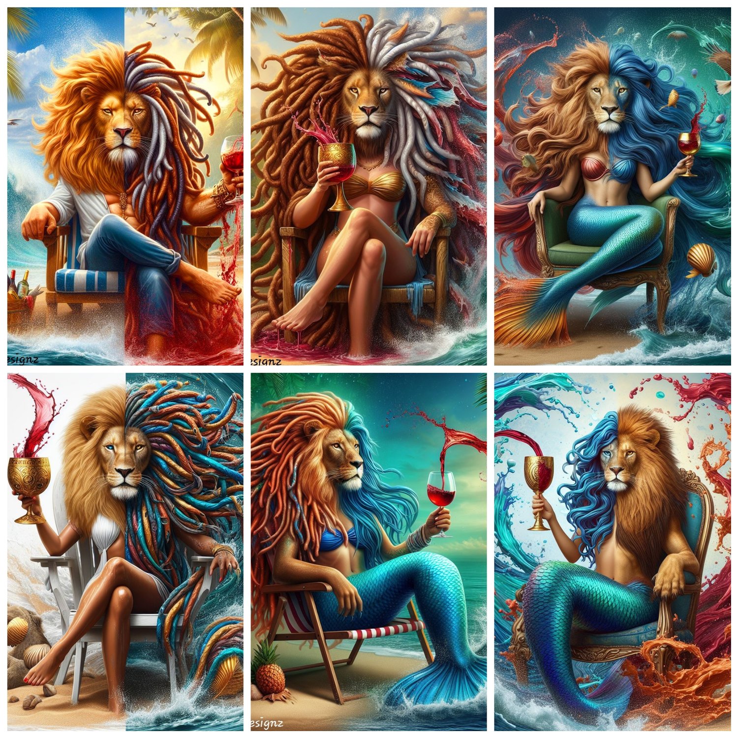 Hybrid Realms-Fusion of Lions, Mermaids & Humanity