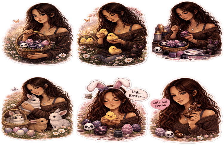 A unique twist on traditional Easter designs, blending soft mystical tones with a magical, witchy atmosphere.