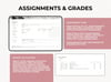 • ASSIGNMENTS page to collect all academic tasks and deadlines organised in monthly calendars and by course. Templates for major assignments, like essays and projects are included.