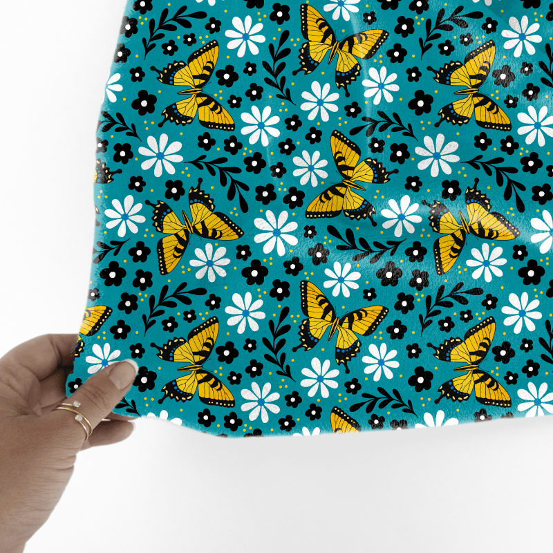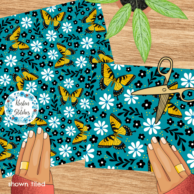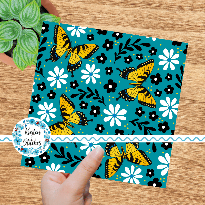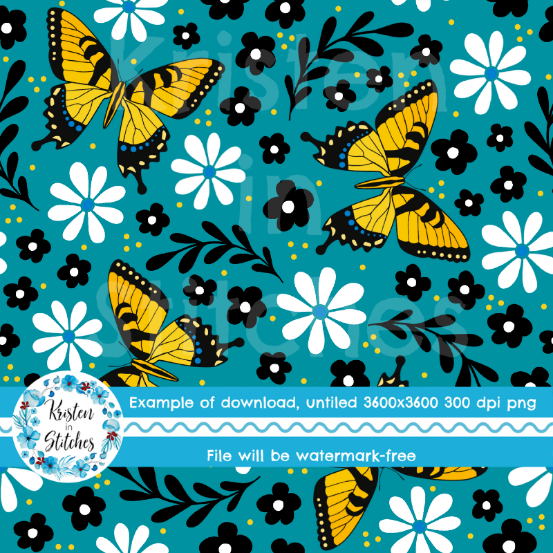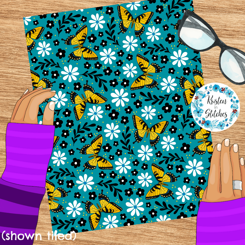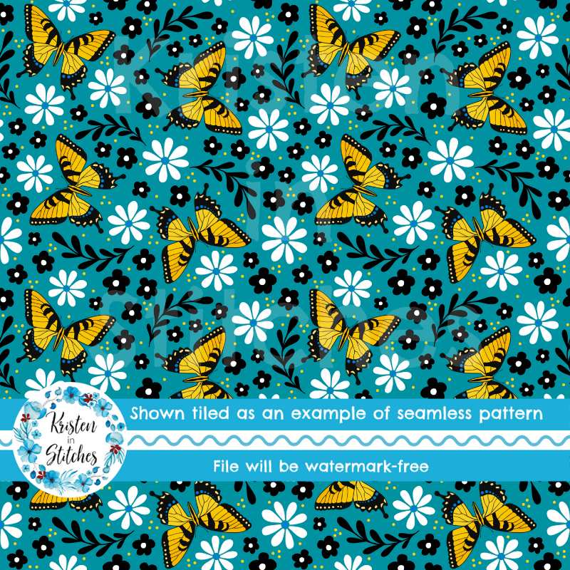 Tiger Swallowtail butterfly pattern with daisy flowers.