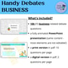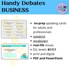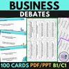 This product includes 100 business-related debate topics which can be used as speaking or writing prompts and business workshops for ELL and ESL learners. It includes topics such as: human resources, investment, sustainability, marketing, entrepreneurship, business strategies, communication, team work, benefits and perks, work-life balance, and more!