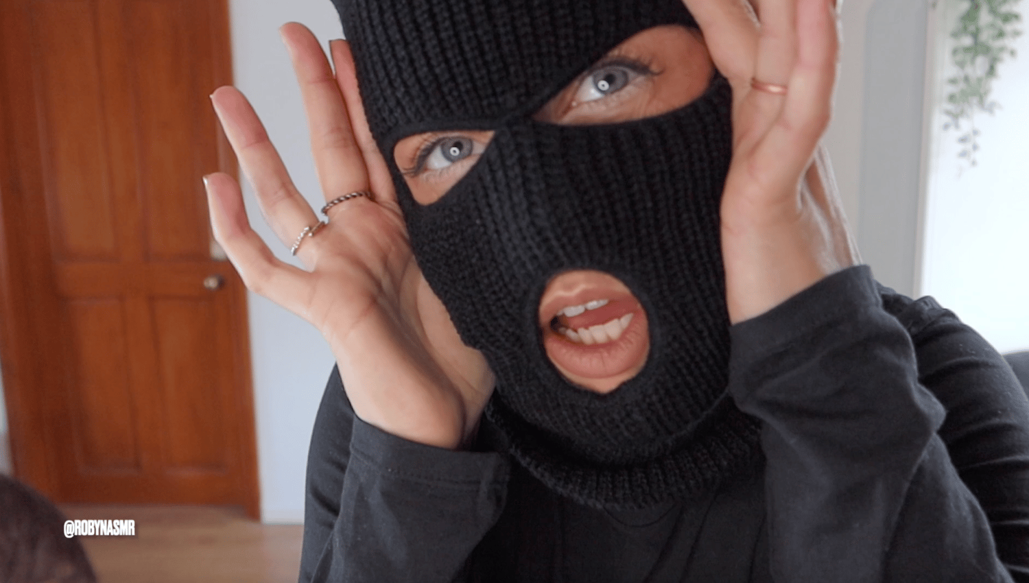 Purchase a 10min full black cotton outfit with leather gloves acting video with balaclava put on and taken off. A burglar acting scene stealing the gold. Video comes as a downloadable PDF with the private youtube link to the video (if you have any problems email me robynasmr1@gmail.com) Content & links must not be re-shared. T&C's included. Enjoy!