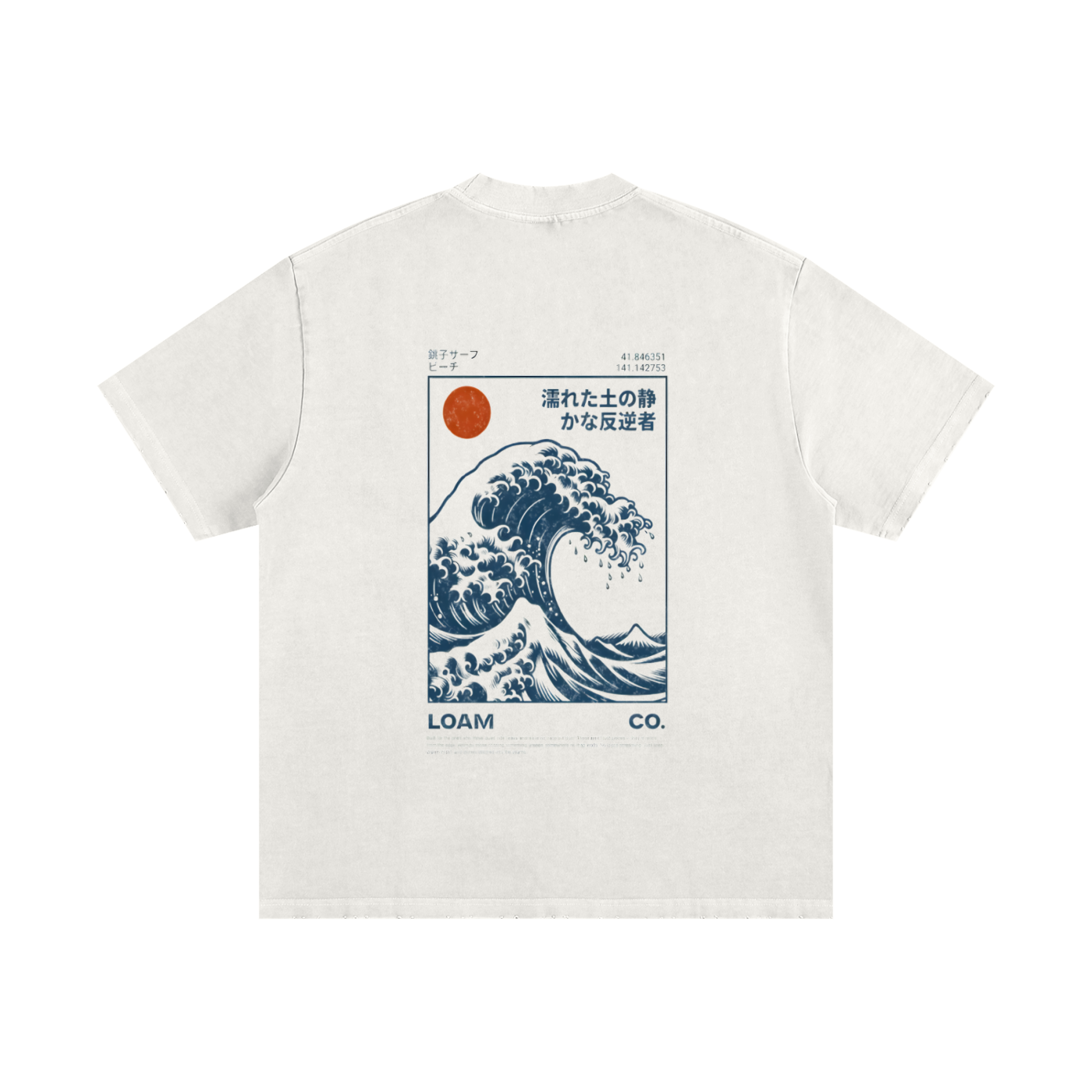 Washed in salt, shaped by trail. The Loam Co. “Wave” Tee brings a coastal calm to core streetwear energy. Made on a Heavyweight Vintage Washed T-Shirt with a naturally frayed hem, it’s got that broken-in look without the wait. Slightly boxy, subtly oversized — built to hang loose or layer up.