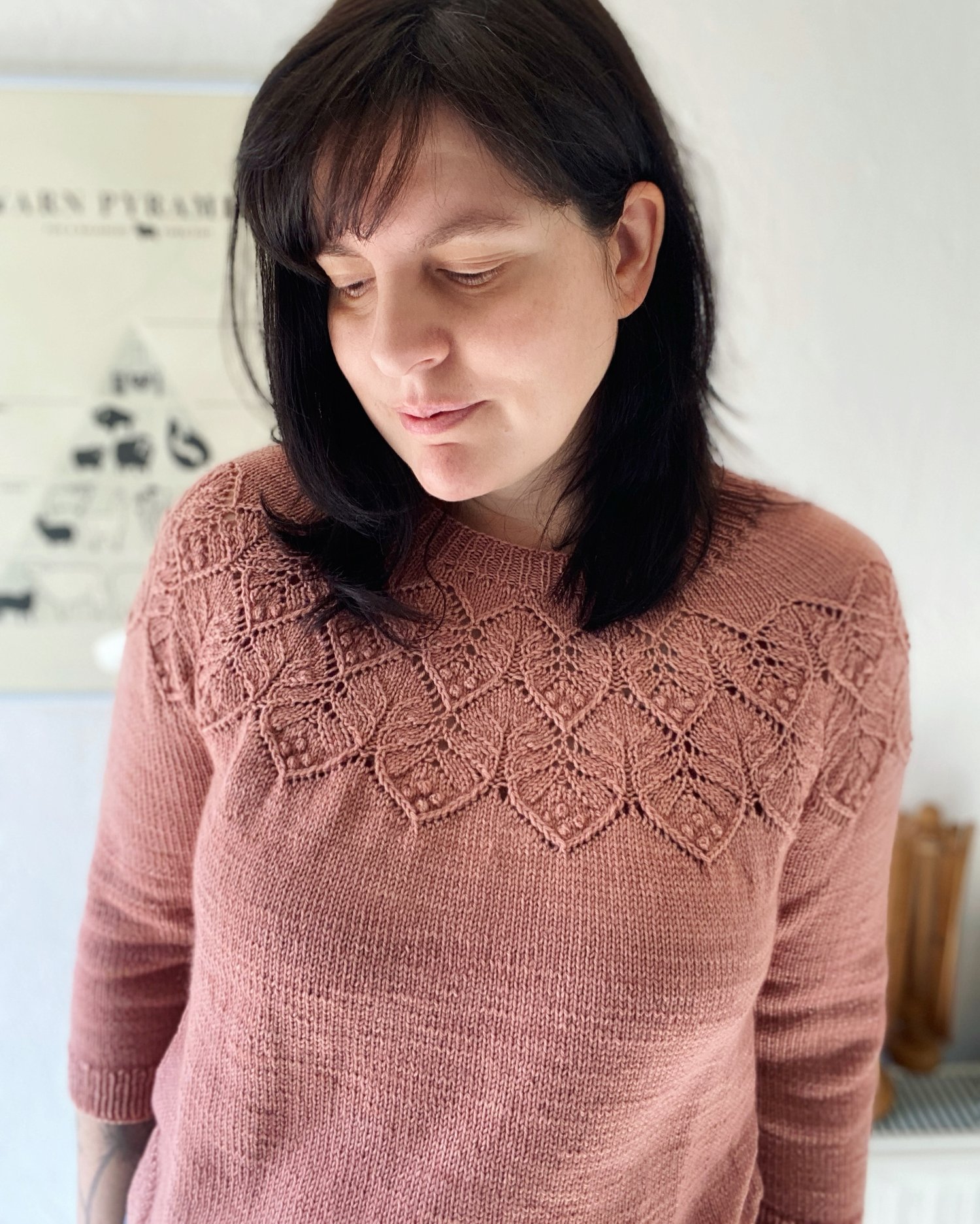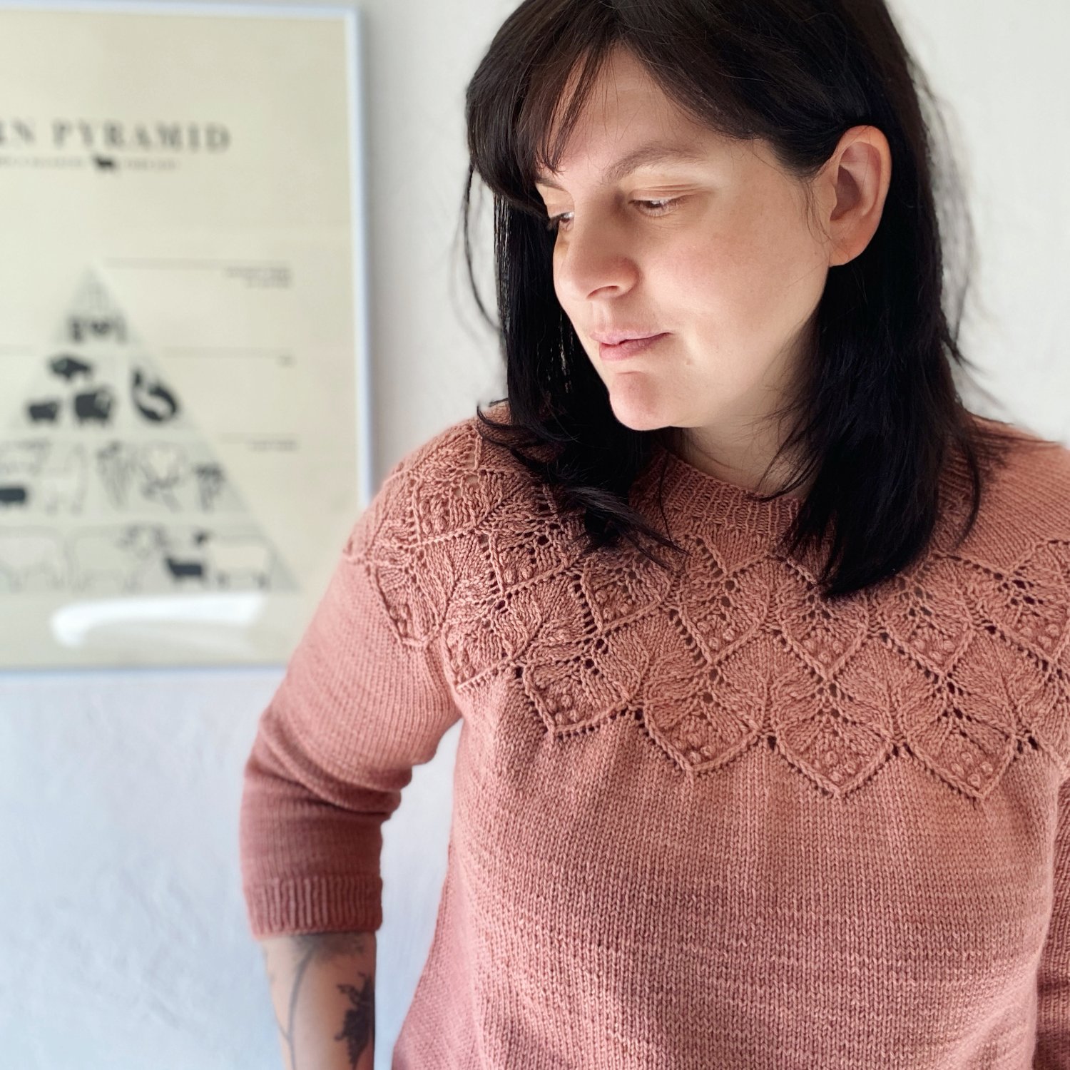 Enola is knitted in one piece, from the top down, entirely seamless.