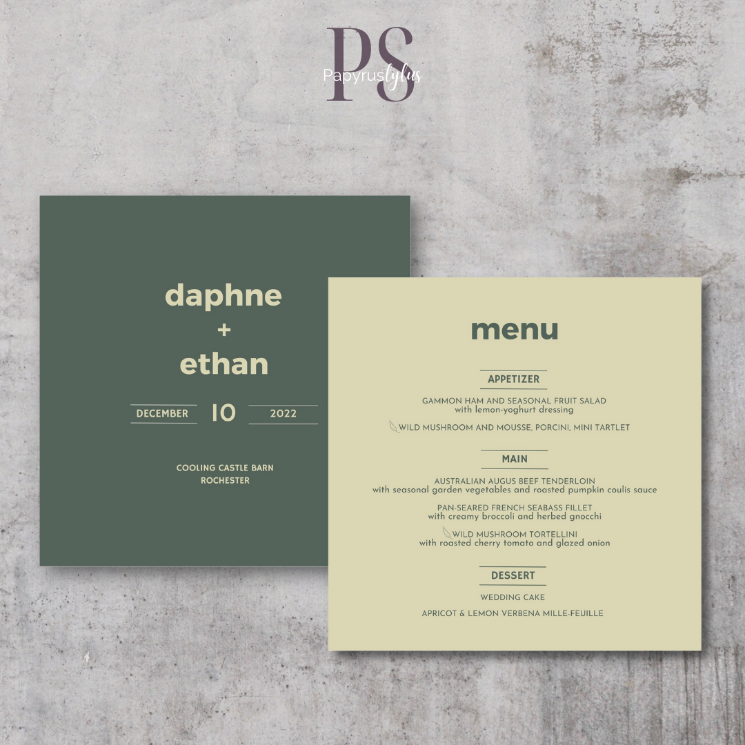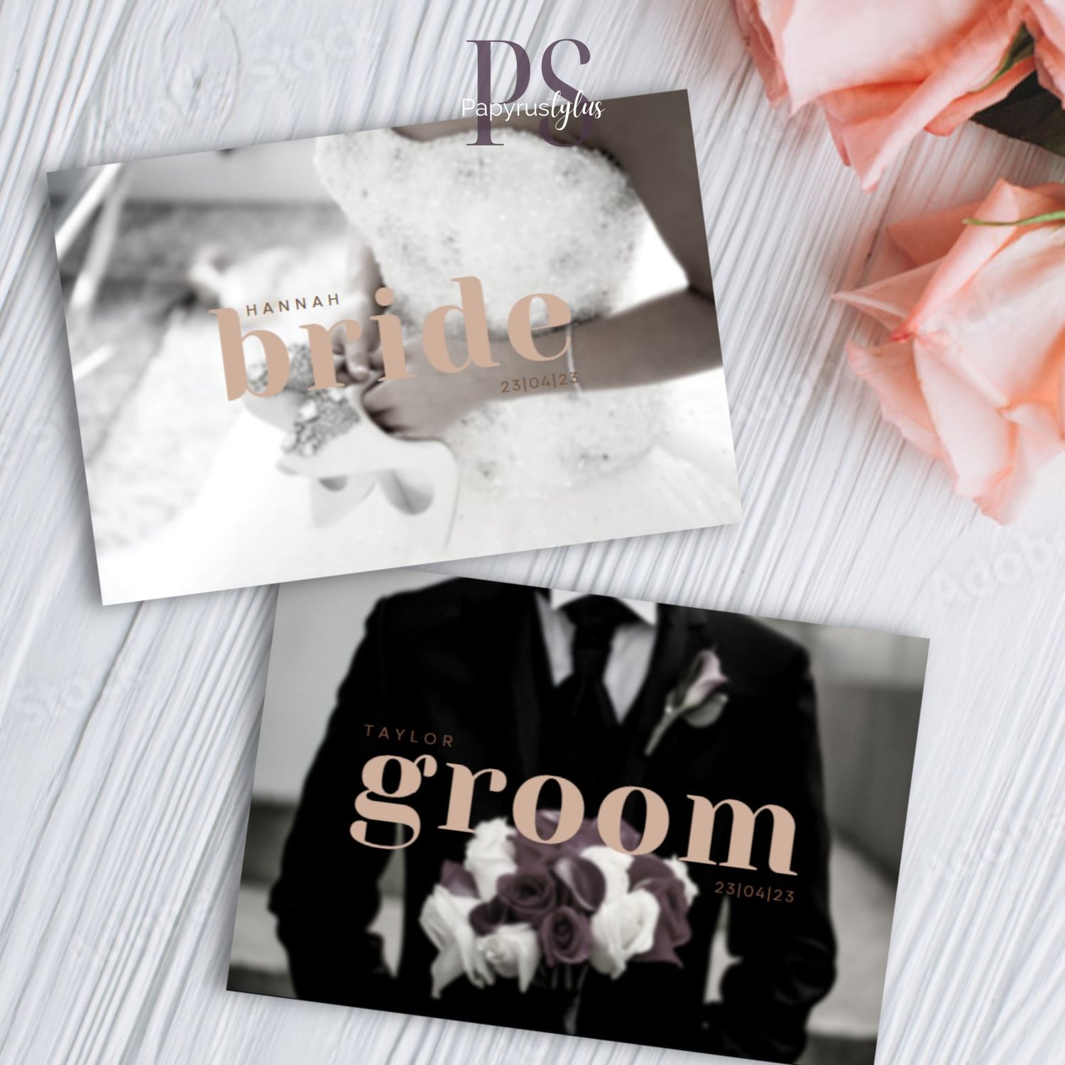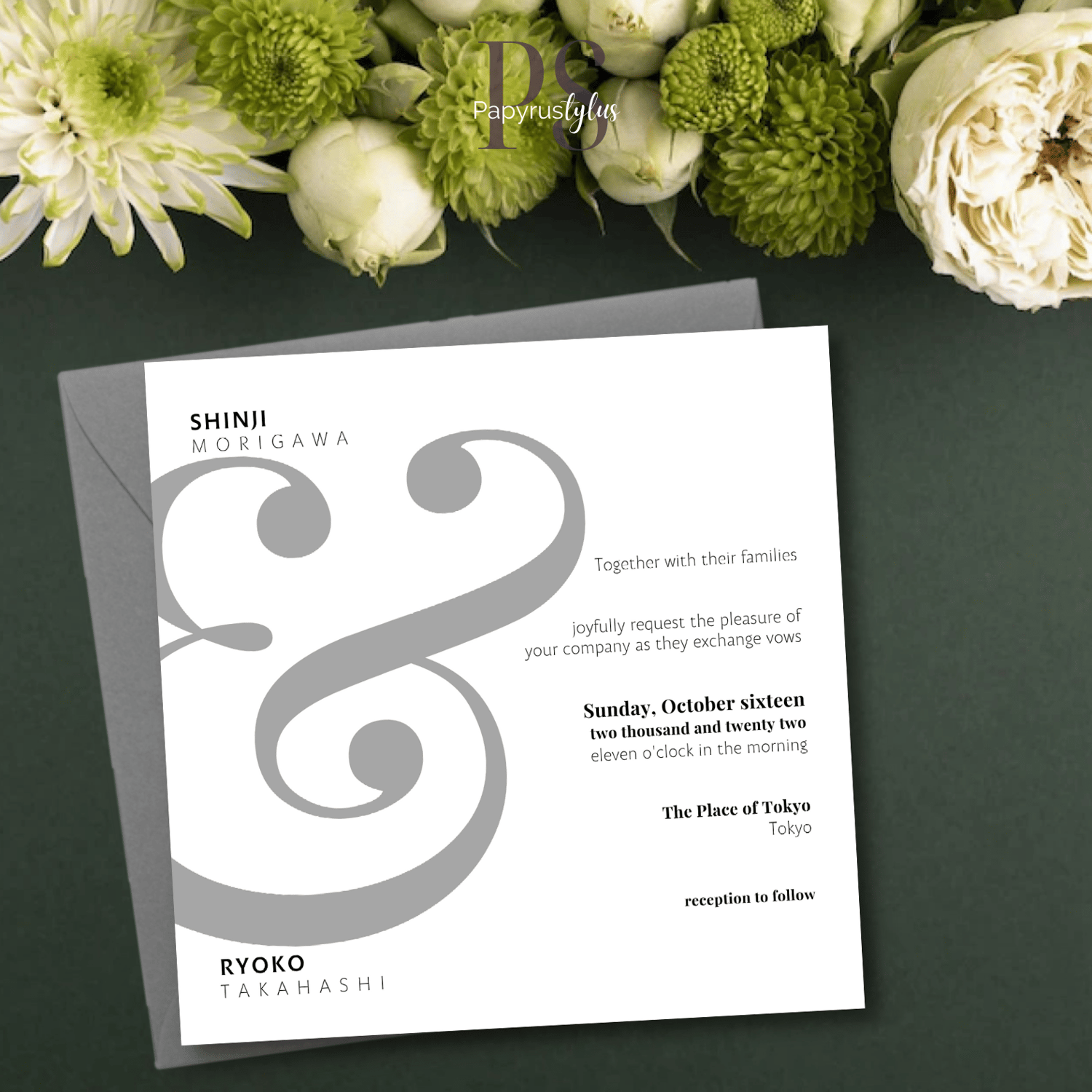 この三つ折り結婚式のプロフィールの小冊子は、縦のタイポグラフィを特徴とするシンプルでシックで、伝統的な結婚式の衣装の写真と特によく合います。 このテンプレートはすぐにカスタマイズできます。
