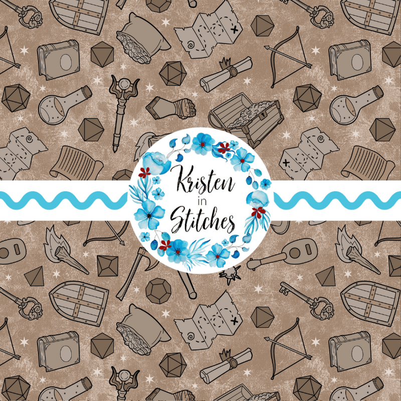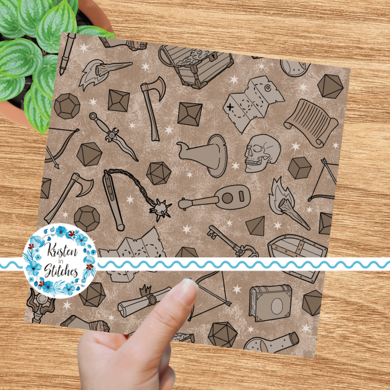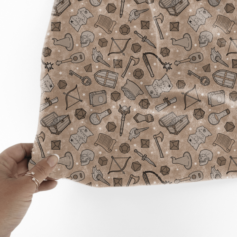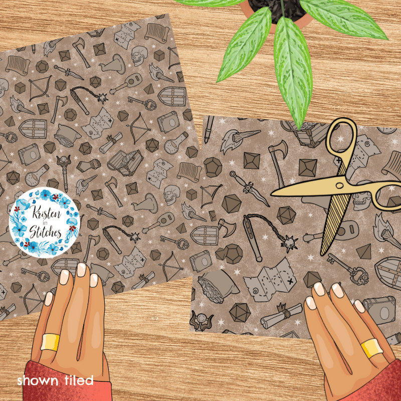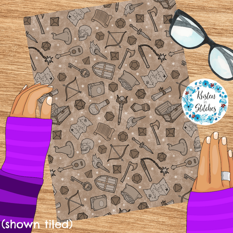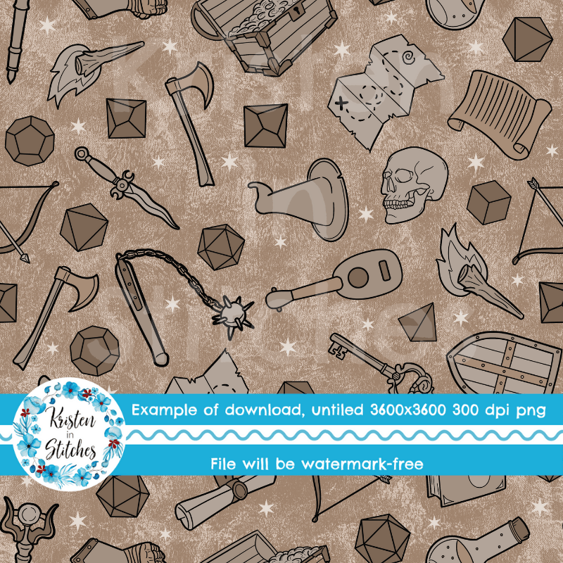 Fantasy Games Seamless Pattern, RPG DND Adventure, Polyhedral Dice, Tan