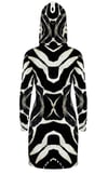 Designed with functionality in mind, this hooded sweatshirt dress comes equipped with a practical kangaroo front pocket and a chic drawstring adorned with stylish silver toggles. Choose between black or white detailing to suit your taste.
