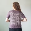 The body of Deco is worked from the bottom up in the round from the hem to the underarm. It starts with lace to create a scalloped hem, then transitions into stranded colourwork. At the underarm cast off, the front and back are separated. The colourwork is worked back and forth in rows to completion. The shoulders are shaped with short rows, and seamed together with Kitchener stitch so they lay flat. The top down set in sleeves are picked up from the armhole and worked down to the cuff. The sleeve caps are shaped by short rows.