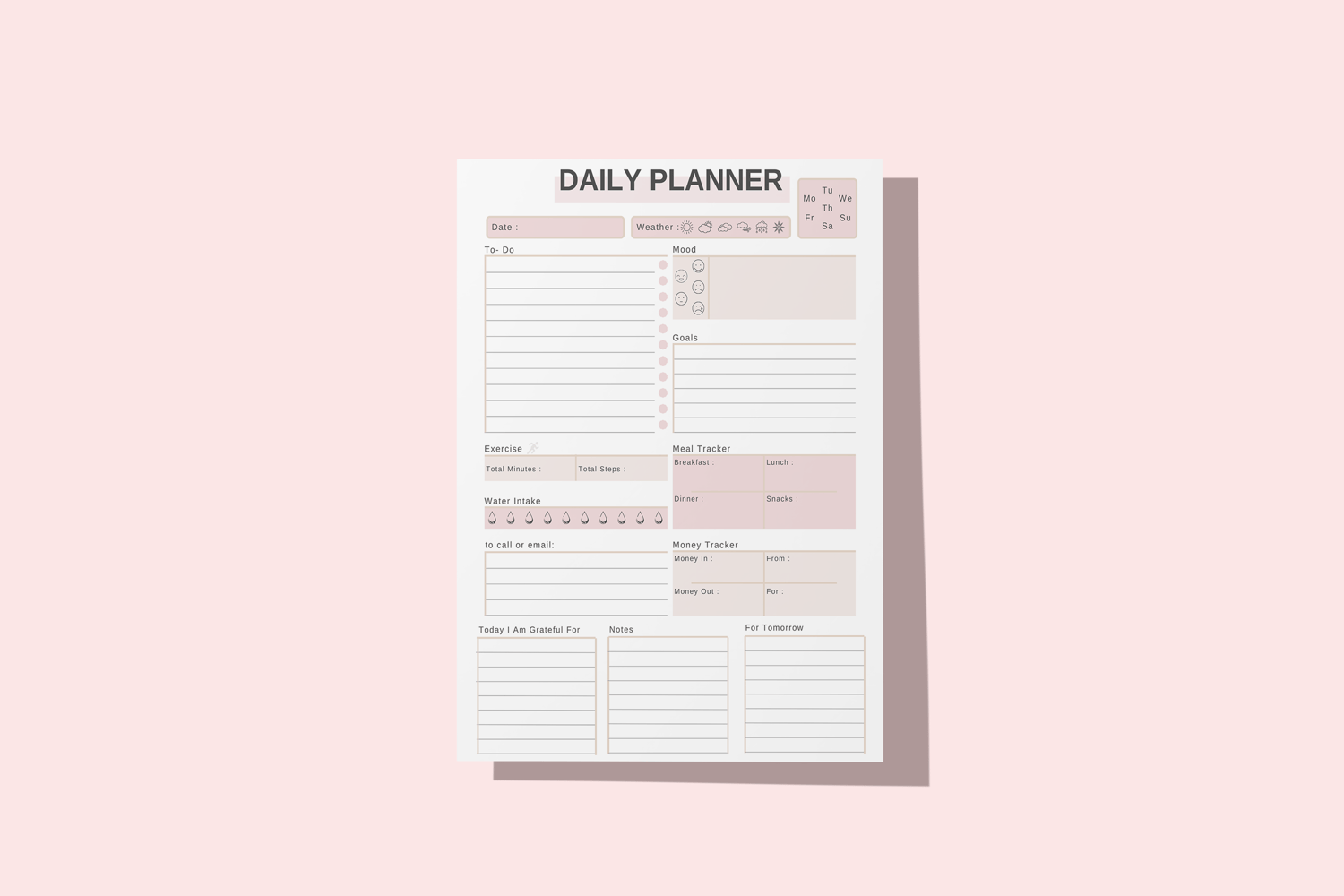 This is a printable Daily planner to manage your daily life and help you achieve your goals.
