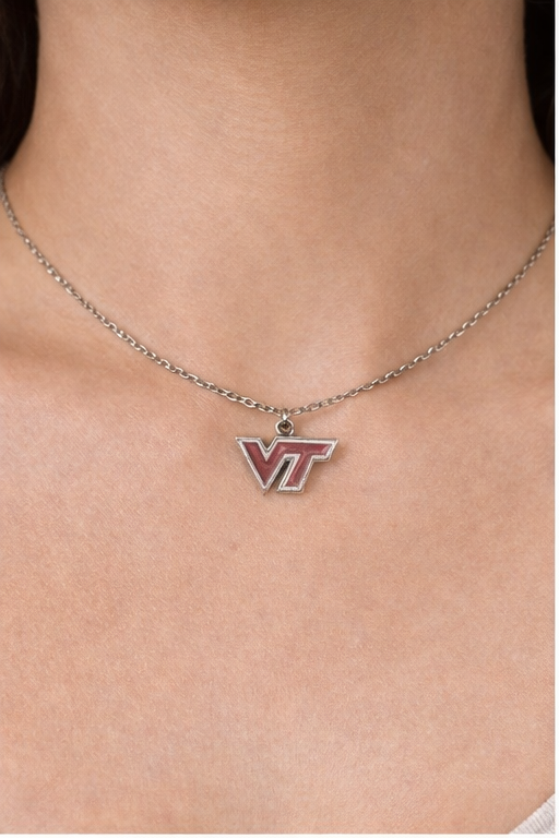 Show your Hokie pride in a timeless, everyday style with this beautiful Virginia Tech VT logo necklace. Featuring the iconic maroon and white VT emblem on a sleek silver-tone chain, this collegiate necklace is the perfect accessory for students, alumni, and devoted fans.