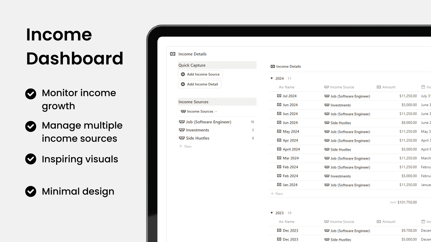 Note: How to use the template and change the currency, those details are inside the template. Charts usage is limited with the free Notion account.