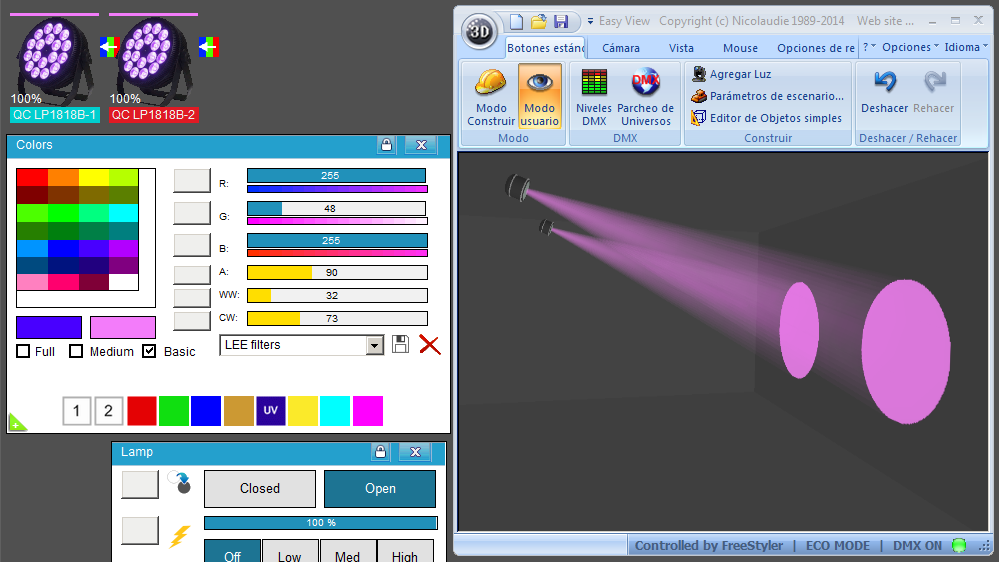Esta Librería SSL2 está optimizada para trabajar con Magic 3d Easy View. Es decir para ver una representación 3D de las secuencias que estemos realizando con Freestyler, QLC+ o cualquier otro soft que se conecte con Magic 3d.