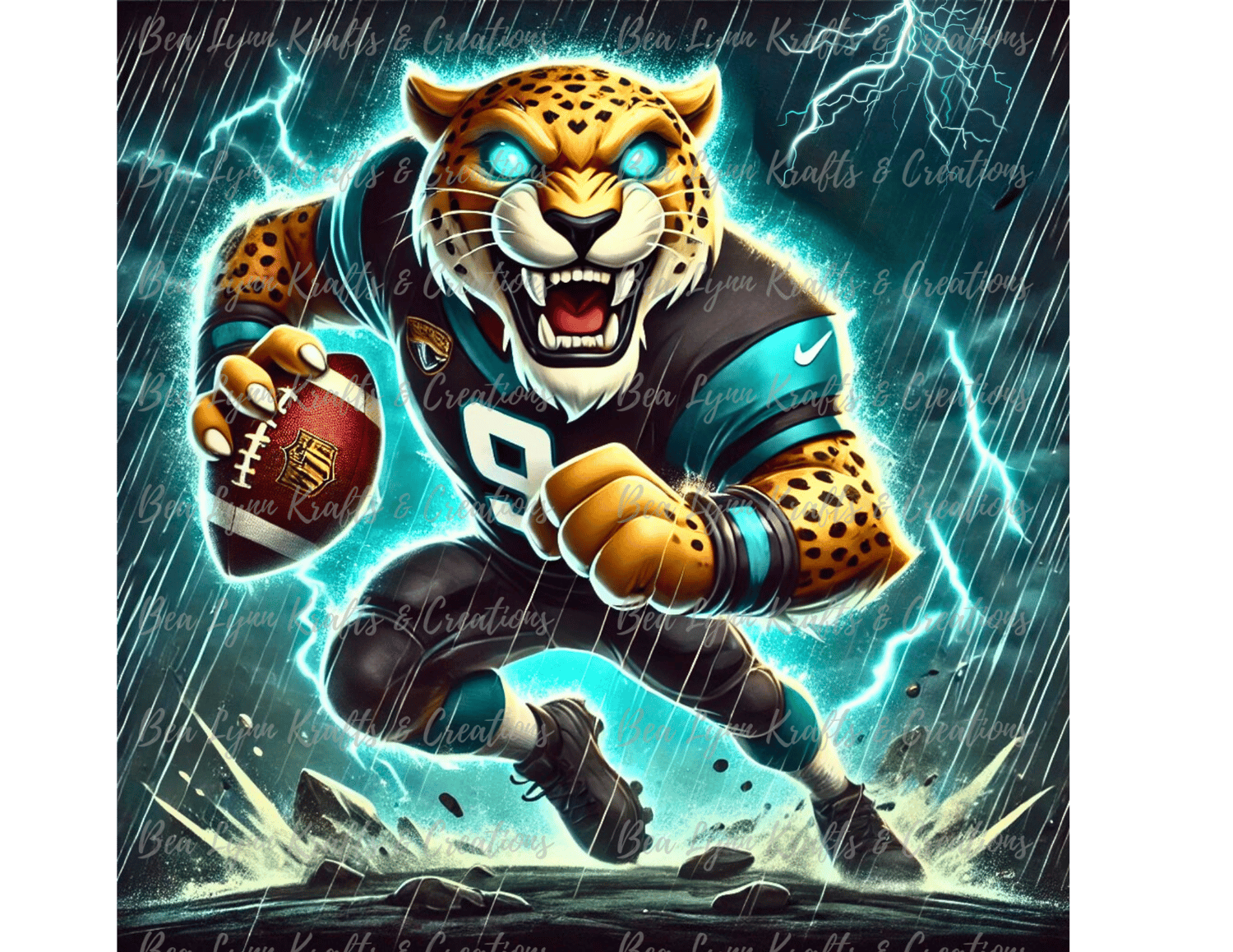 Explosive Jacksonville Jaguars Mascot PNG | Running with Football in Lightning Storm | Transparent Background | Instant Download