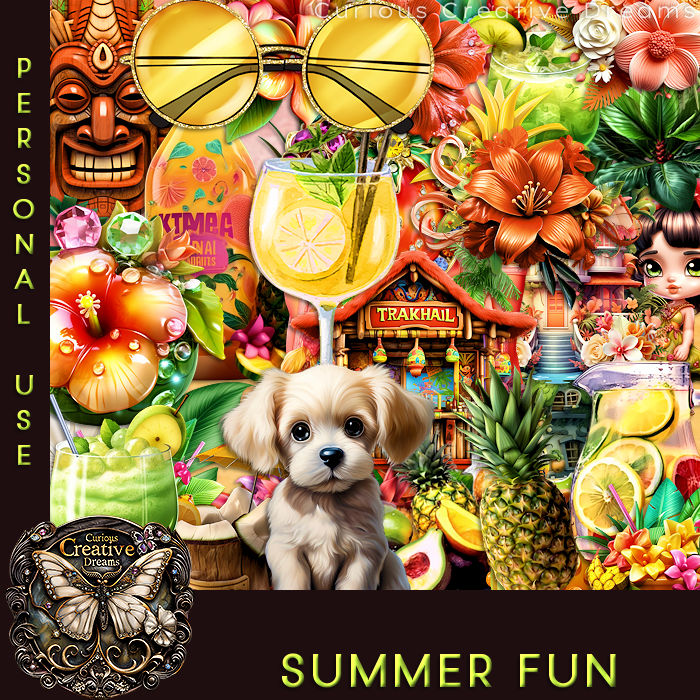 Summer Fun comes with 103 Elements , 12 Frames , 20 papers , AI Generated , Personal Use Only
