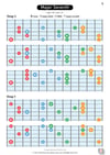 Each chord type is presented with clear diagrams, displaying chord shapes and intervals across the full neck.