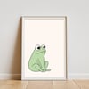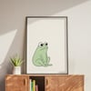 Cute Frog Cartoon Illustration Poster | Green Sad Frog Sitting | Disappointed Toad Art Print | Melancholic Frog Wall art