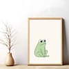 Cute Frog Cartoon Illustration Poster | Green Sad Frog Sitting | Disappointed Toad Art Print | Melancholic Frog Wall art | Digital Wall art