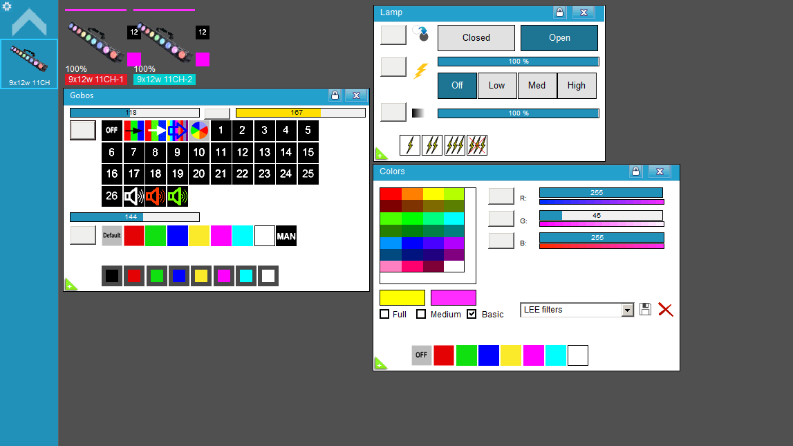 Fixtures de Freestyler P/ 9x12w RGB de Yuer ( 3-5-11-27-29CH )
