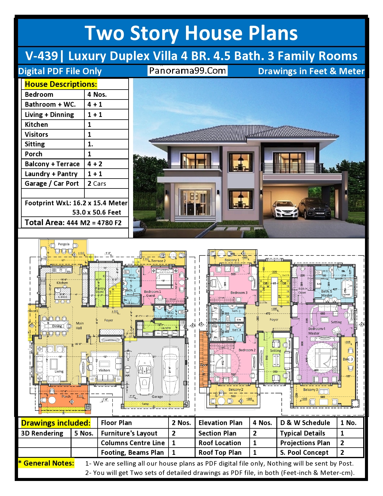 V-439| Luxury Modern Duplex Villa – House Plans 4 Bedroom, 4 Living Rooms