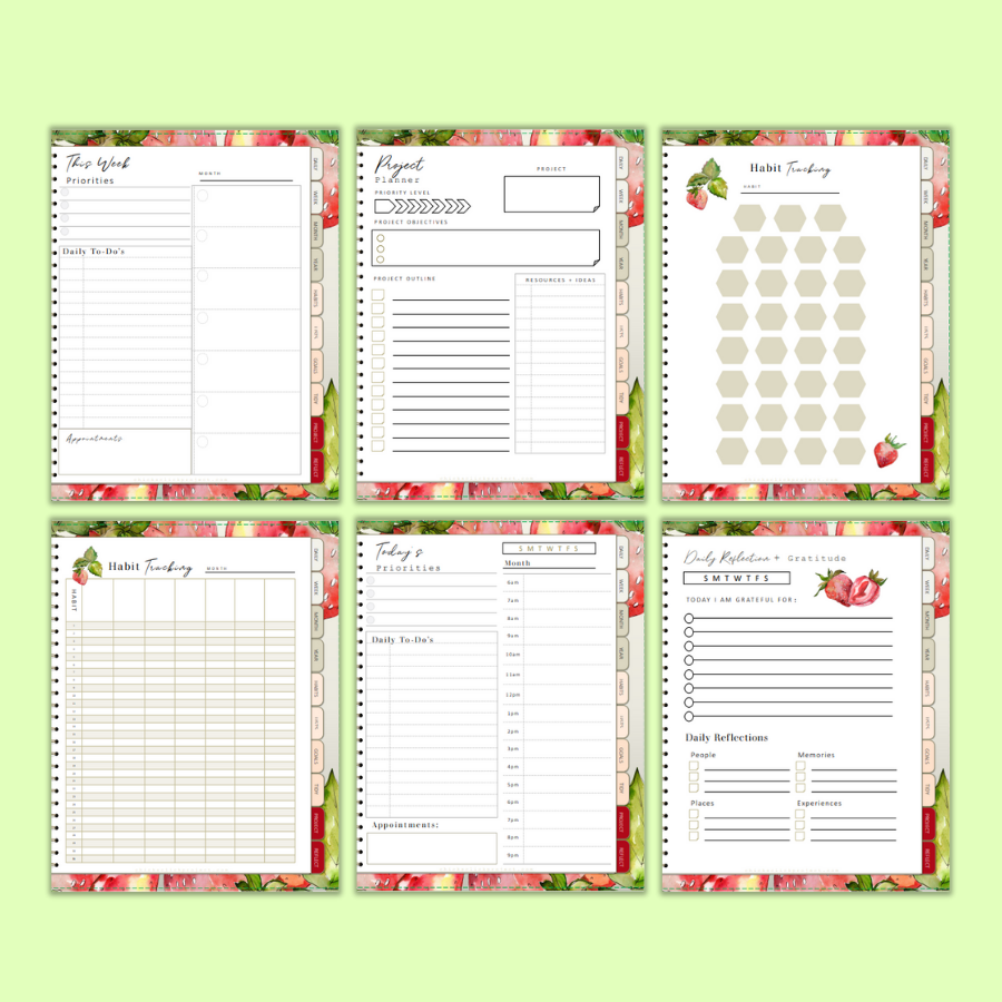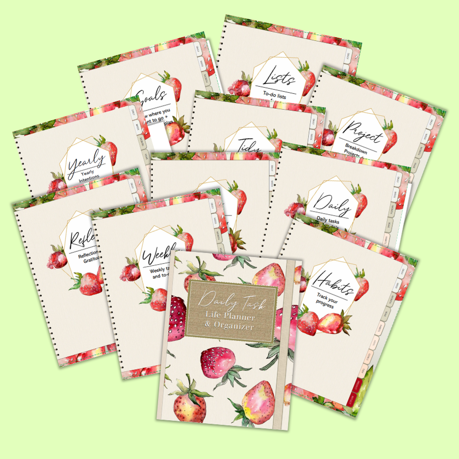 Strawberry Fields Forever Digital and Printable Life Planner! PDF download for iPad & any tablet,schedules,routines,habits,gratitude,project...