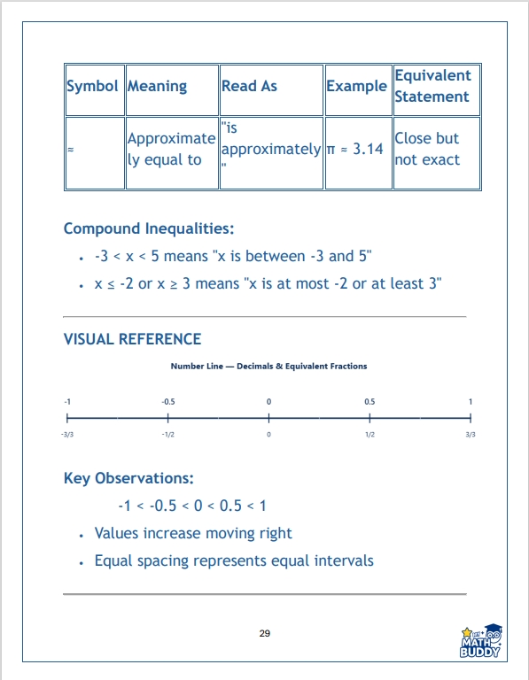 Unit 1, The Language of Numbers, unlocks the foundation of all middle school math: how numbers behave, connect, and communicate meaning. Through short, student-friendly notes, real-world applications, and reference charts, learners build fluency that lasts far beyond the test.