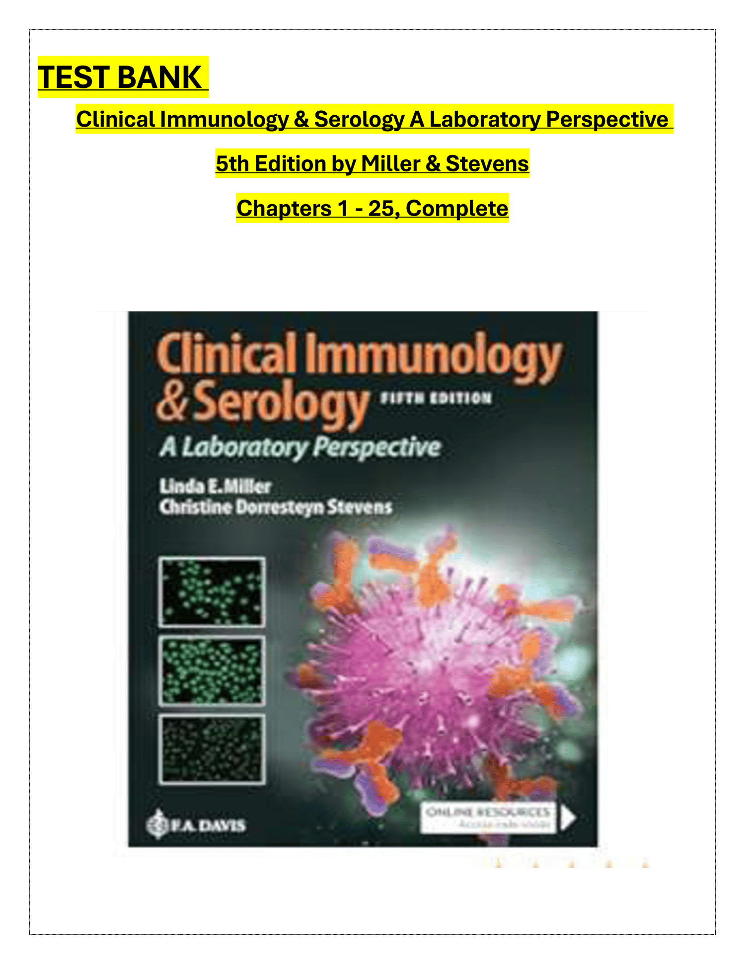 INSTANT PDF DOWNLOAD – Test Bank for Clinical Immunology & Serology: A Laboratory Perspective, 5th Edition by Linda E. Miller & Christine Dorresteyn Stevens (Chapters 1–25 Complete).