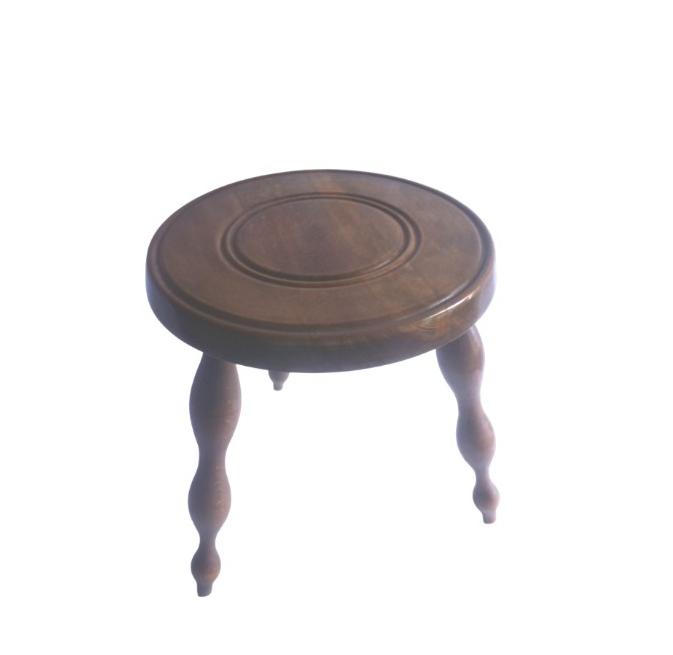 Pretty vintage milking stool, Turned Wood round seat with 3 spindly legs. 60s, tapered three-legged milking stool, Round seat, made in France, lovely patina and style, used as a side table in a bedroom, a plant stand or a side table for a sofa. Dim: 30x27,5x3 cms. Very good vintage condition – no chips, no cracks. Additional up-to-date photos or details available upon request. Vintage items may show signs of slight wear due to their age.