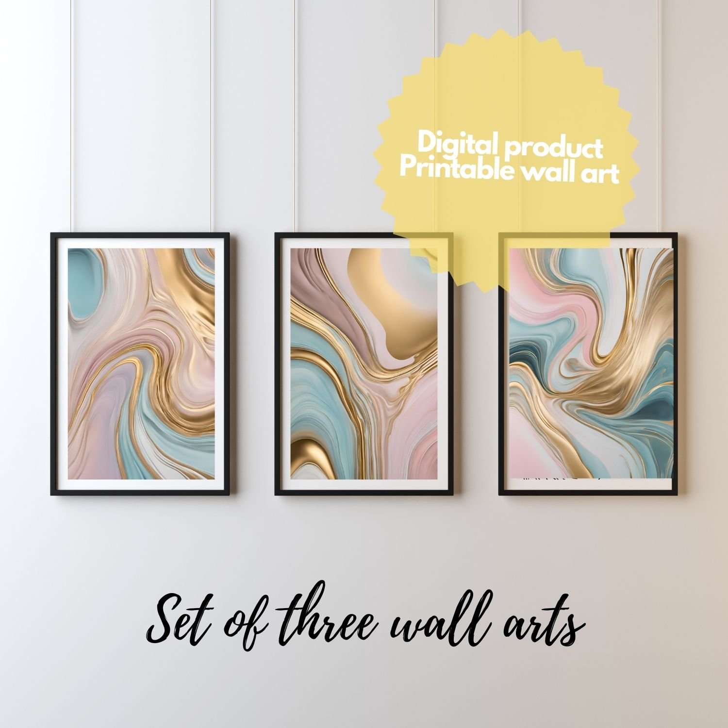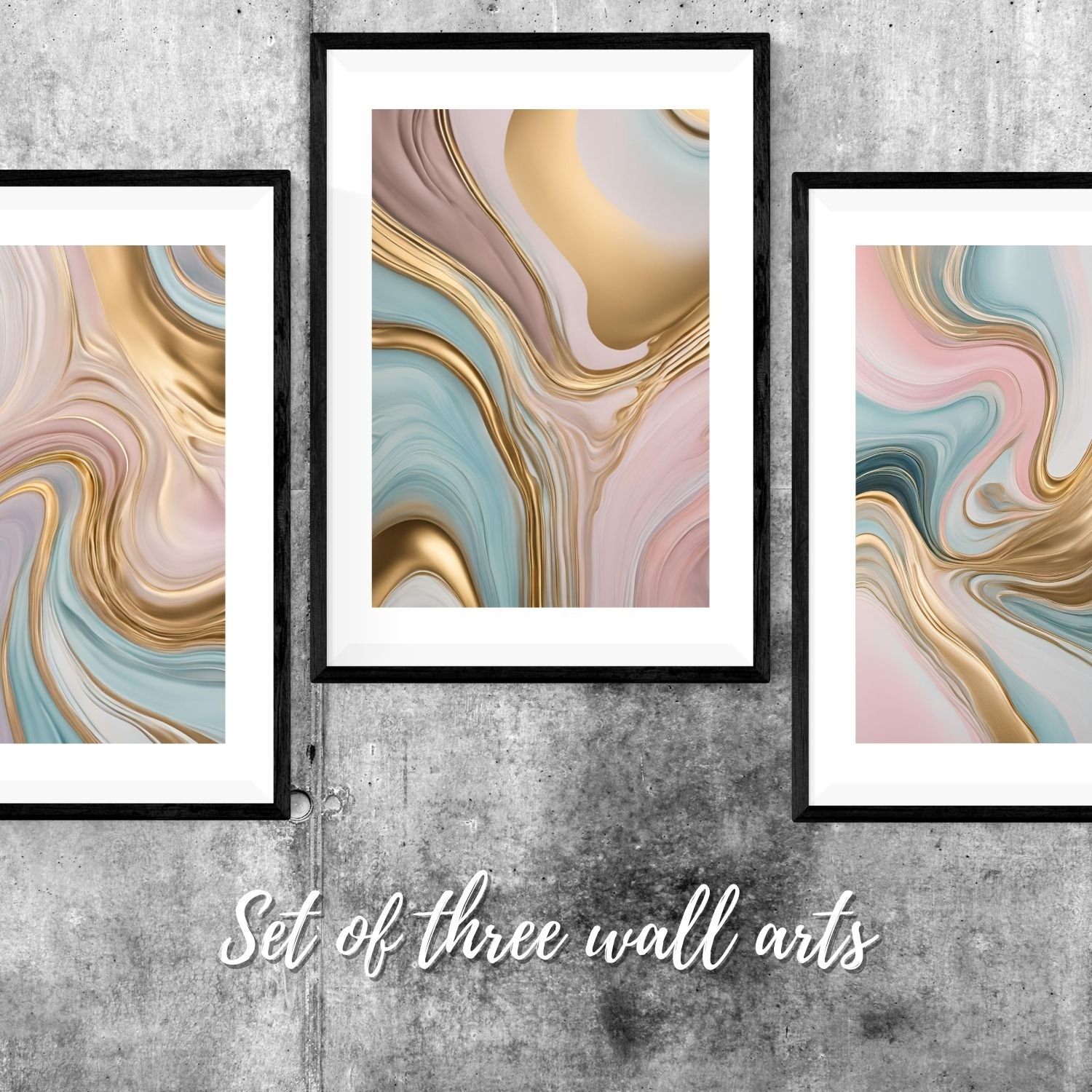 A digital file for printing; Golden ink art decoration set. Home decor abstract pattern with liquid ink. Decoration with abstract ink pink golden for new house