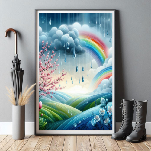 - **April Skies** – a whimsical rainy landscape with hope and color