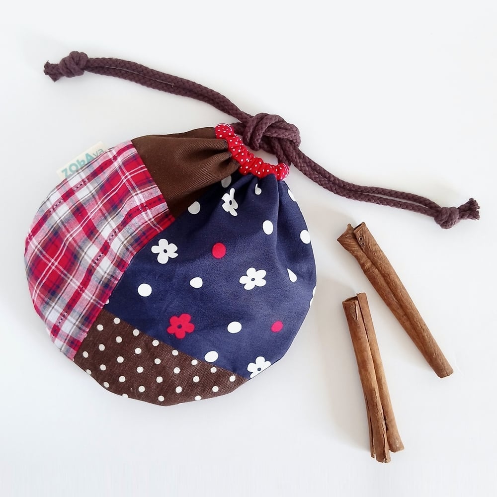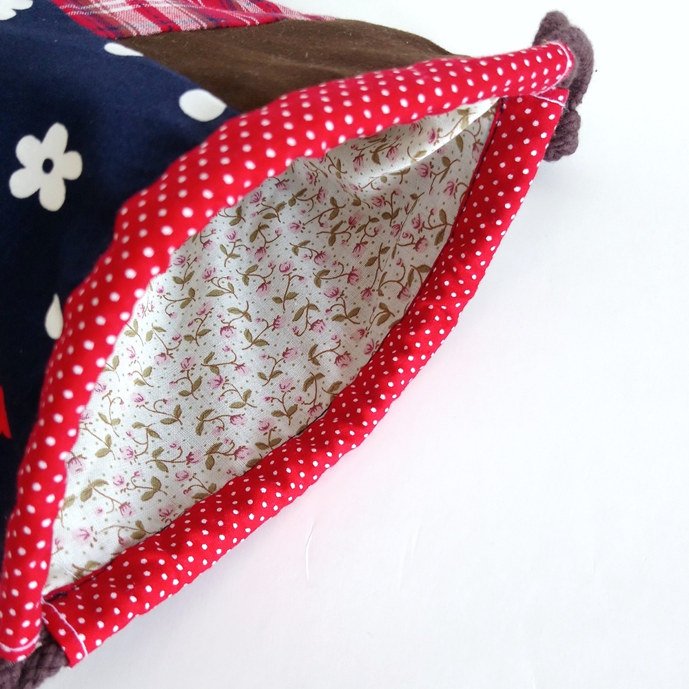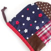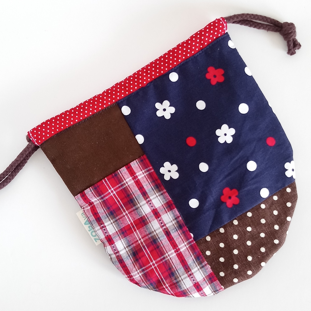 Round Patchwork Drawstring Bag (Dark Blue, Red)